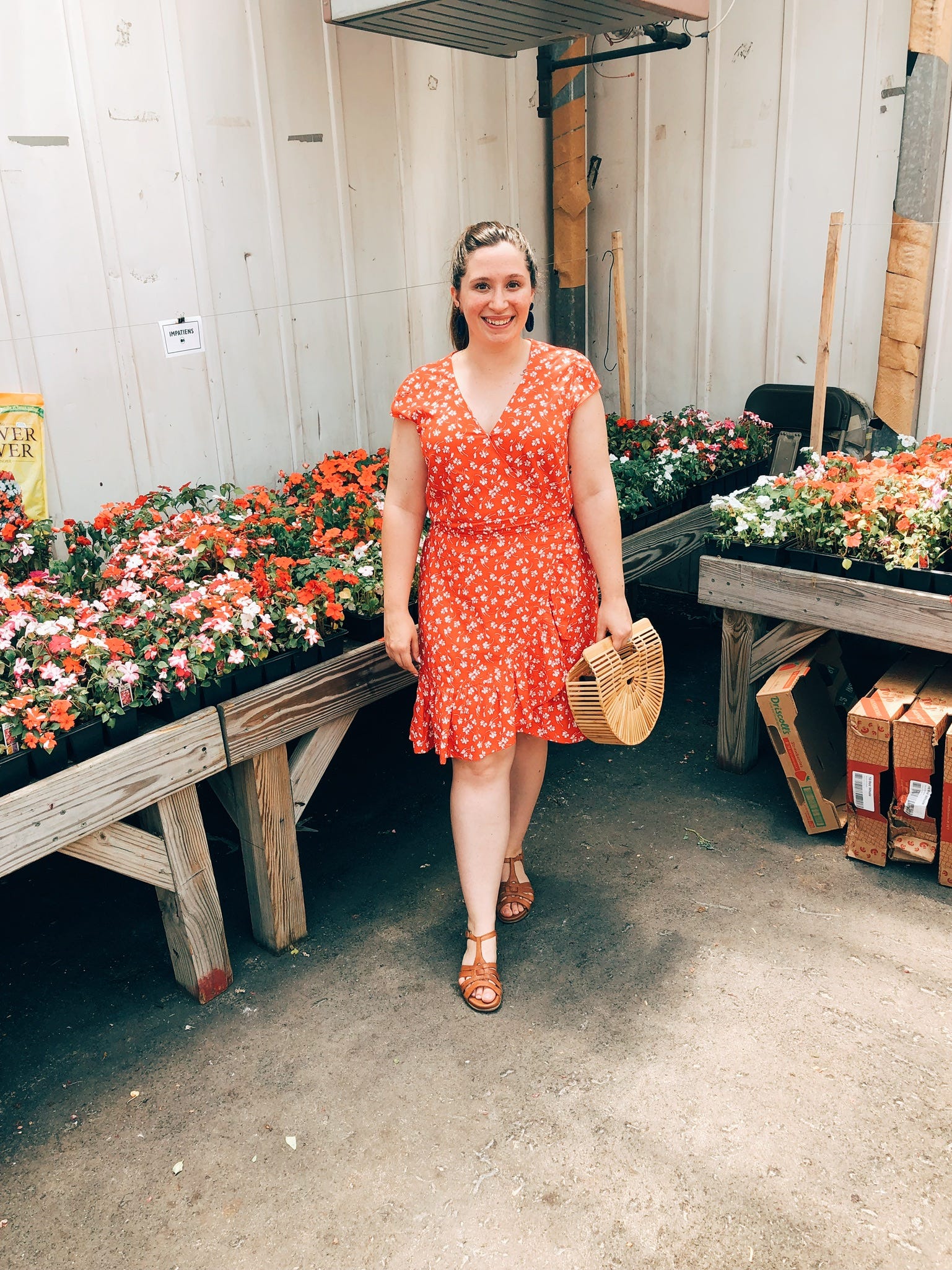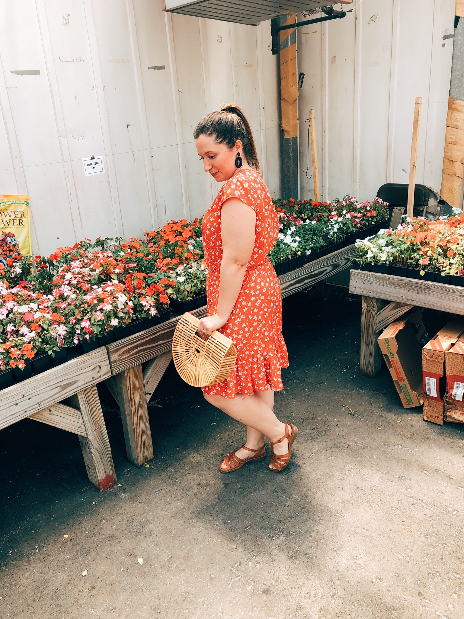 DRESS | red and white floral dress | CLUTCH | bamboo clutch |