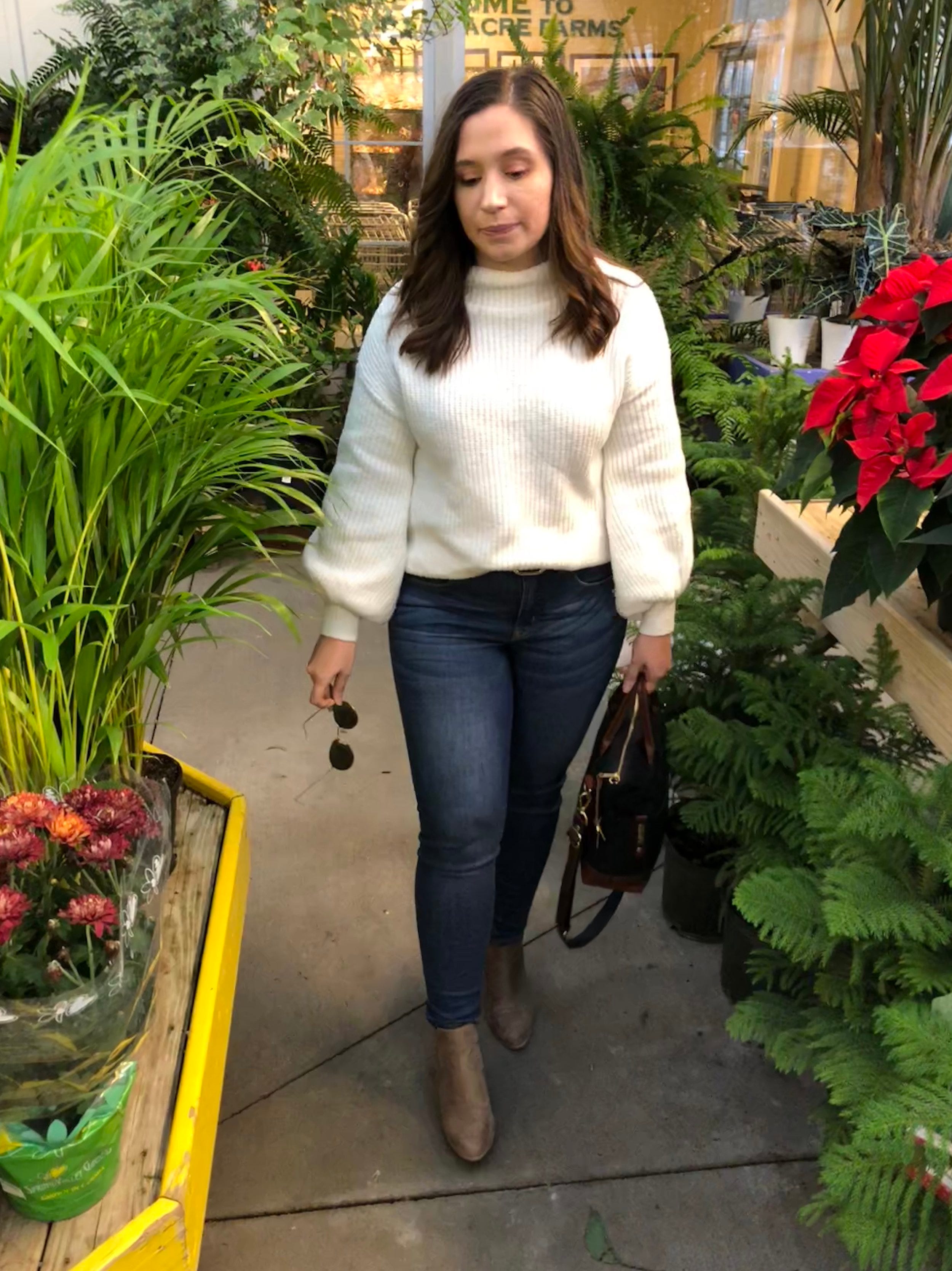 Have you ever loved a piece of clothing SO MUCH because finally getting your hands on it was like the sweetest of victories? This sweater is one of those items for me. Let's rewind back to a few Target trips ago when I was meandering around the A New Day Section looking for clothes I didn't really need. I happened to see this sweater on the mannequin and just knew I had to have it. It's the perfect amount of statement sleeve for my petite frame and even though I didn't really know how to wear statement sleeves, I knew it would be a great piece to start playing around with.