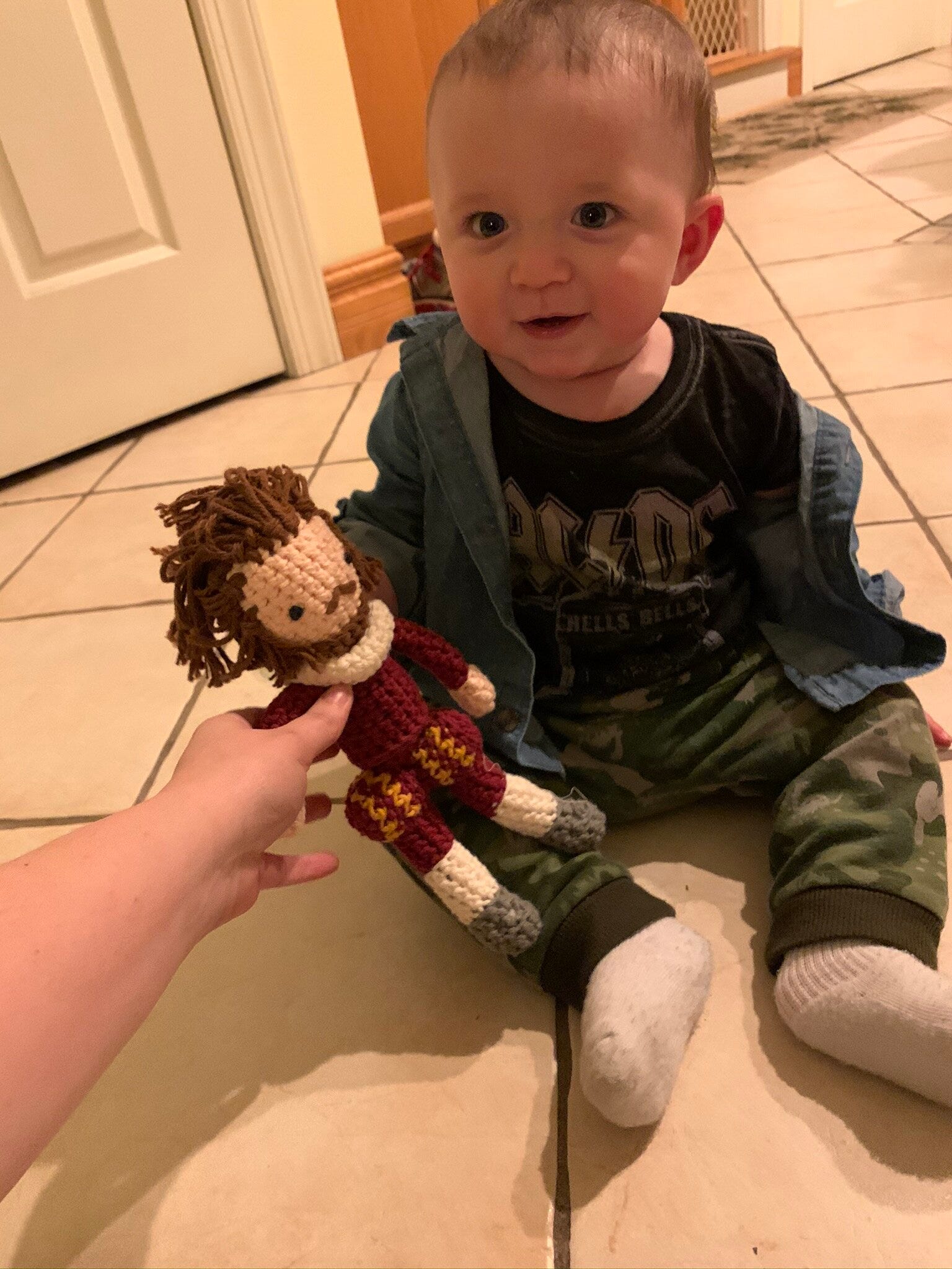 Jasper’s Shakespeare Doll - I found this at a local shop in Occoquan, Virginia. It was hand made by a local artisan there and I knew the instant I saw him sitting on the shelf that he was coming home with us. Luckily for me, Jasper loves him just as much as I do and he’s officially become his car seat buddy. Here’s a Baby Yoda version from Etsy if you’re looking for something as equally as adorable.