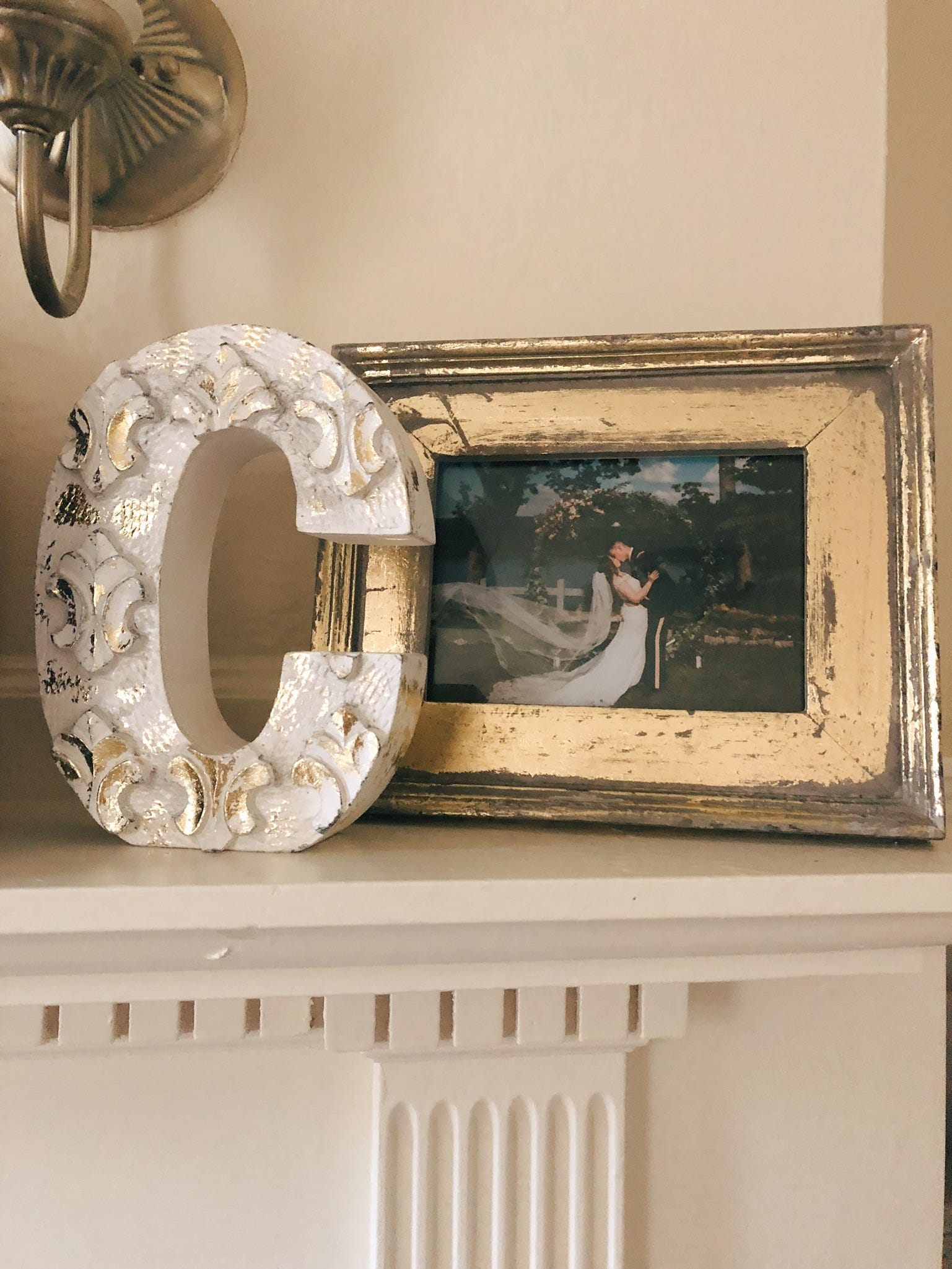 "C" - Our wedding decor has been majorly repurposed all throughout our house. This "C" was picked up at either Home Goods or TJ Maxx when I was searching for random wedding decor. When I was looking for wedding decor, I really kept in mind the type of items I would want to use in our home so I wasn't spending a fortune on things for the wedding that I wouldn't use again.