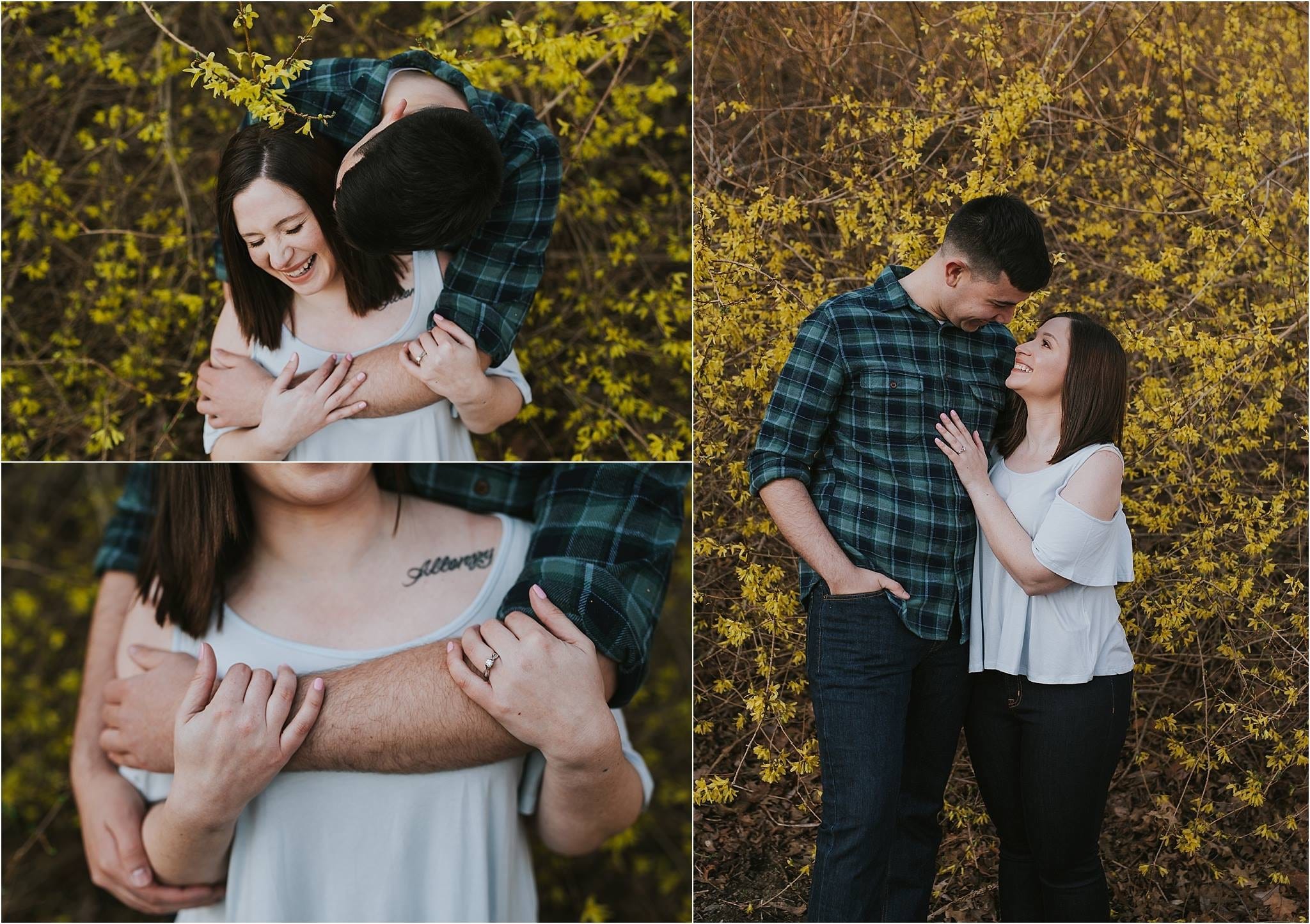 Don't be afraid to make your engagement photo outfits playful by adding in patterns and textures to your outfit choices. Prints are a good way to make yourself pop out of a busy background and add some whimsy to the photo while textures, like lace, can make the engagement photo outfit seem more dimensional. I love both of the ways we incorporated pattern and texture into our shoot. This floral maxi dress was actually a last minute buy on Amazon and I'm still obsessed with it (PS: it comes in so many different options from patterns to solid colors).